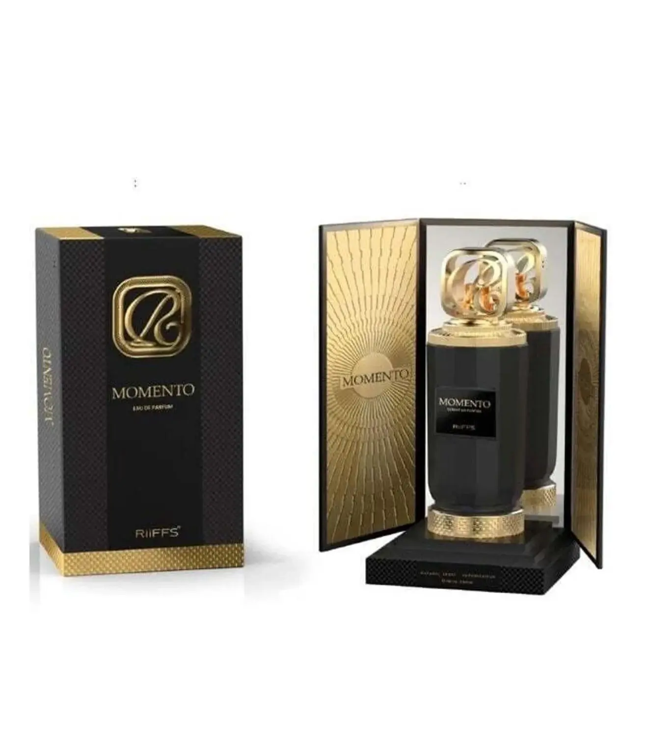 RiiFFS Momento ist ein faszinierender Duft, der die Essenz von Eleganz, Leidenschaft und zeitloser Raffinesse einfängt. Der Duft eröffnet mit frischen, spritzigen Noten von Bergamotte und aromatischen Kräutern, die sofort beleben. Im Herzen entfaltet sich eine warme, sinnliche Komposition aus Amber, Vanille und feinen Blüten, die Tiefe und Charakter verleiht. Die Basis aus edlen Hölzern, Moschus und einem Hauch von süßem Harz sorgt für einen langanhaltenden, eleganten Nachklang.